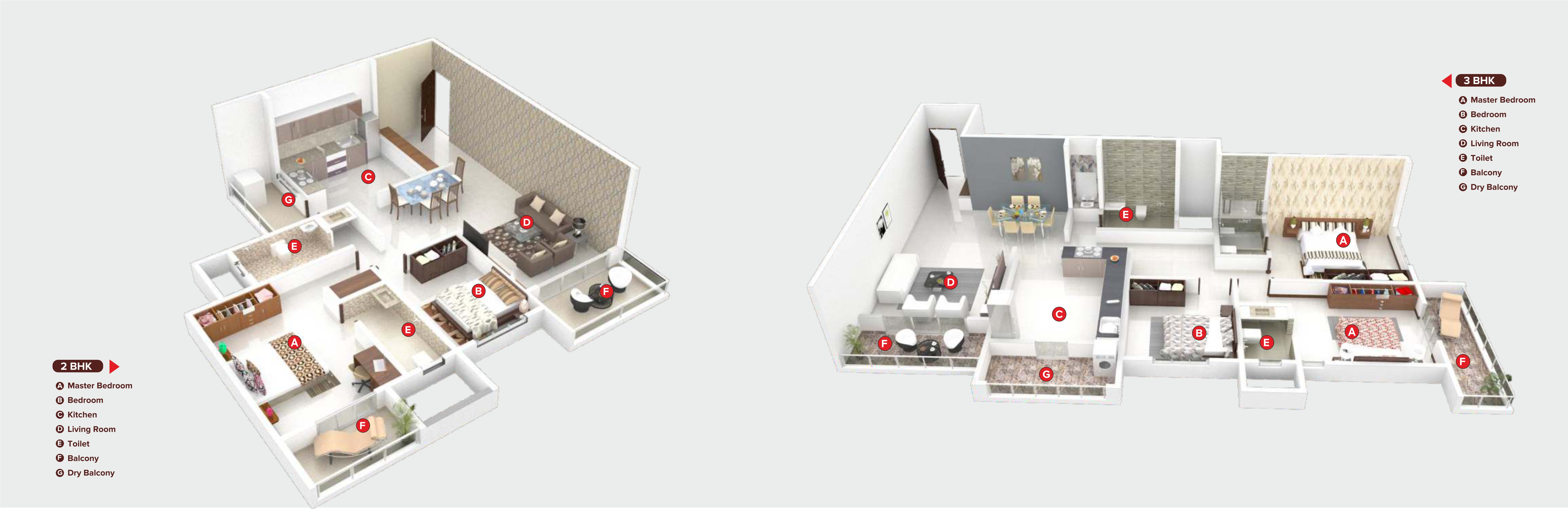 With spacious interiors and thoughtfully designed living spaces, our 2 and 3 BHK homes offer you the freedom to enjoy more laughter, love and togetherness. Whether it's sharing a meal, celebrating milestones, or simply relaxing, you'll have all the room you need to create priceless moments with your loved ones.